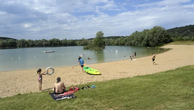 Baignade surveillée (aux horaires d'ouverture, petit et grand bains) ; terrain de beach volley, aire de pique-nique et activités nautiques : paddle et canoë.