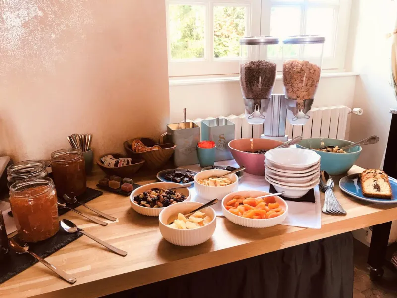Vous pouvez déguster votre petit-déjeuner continental en formule de buffet dans la salle ou à la terrasse, à l'ombre ou au soleil.