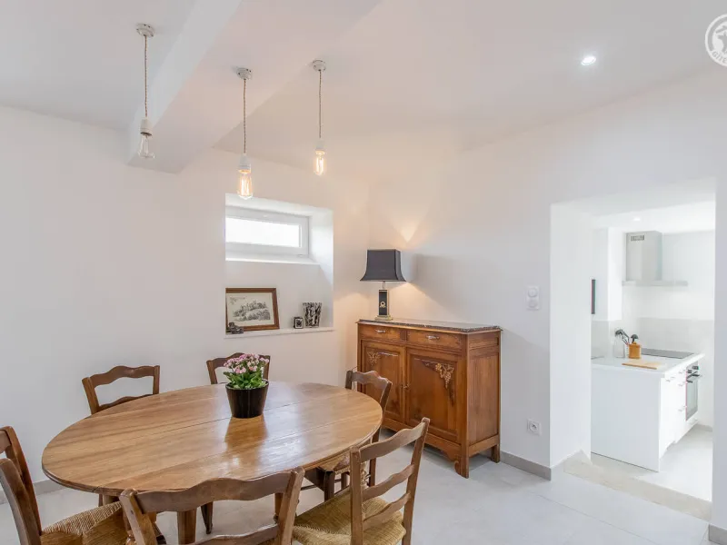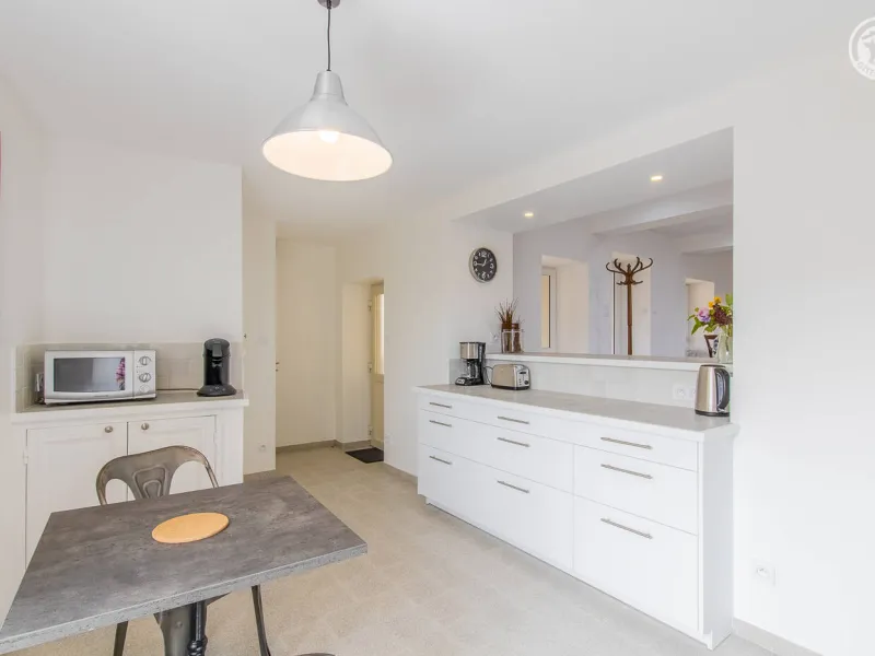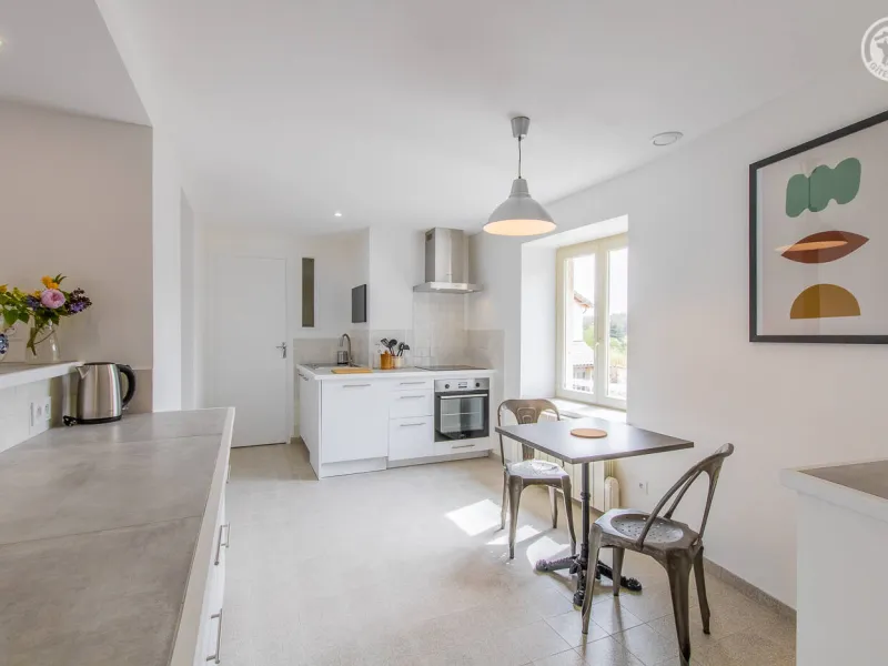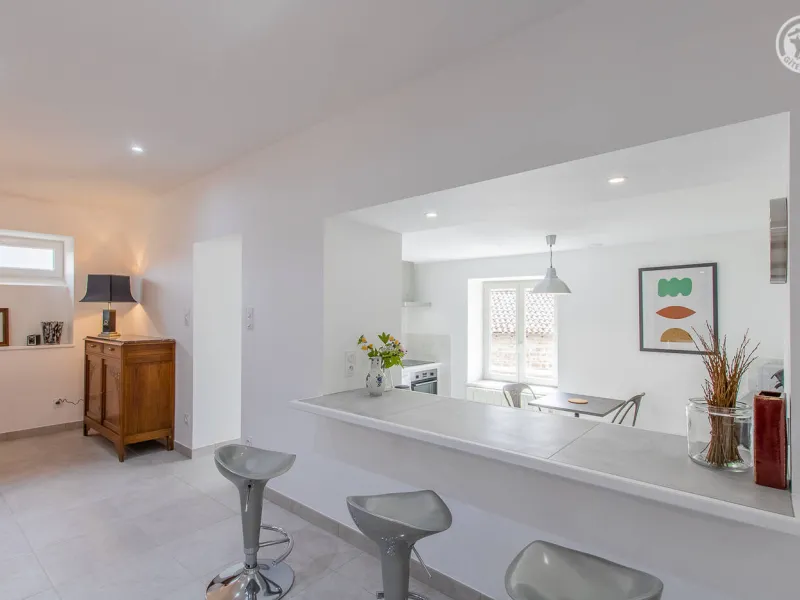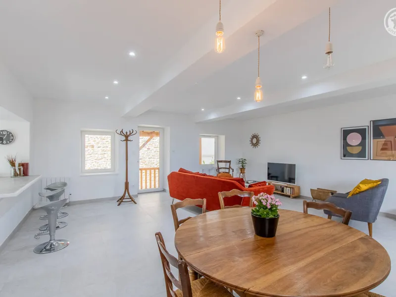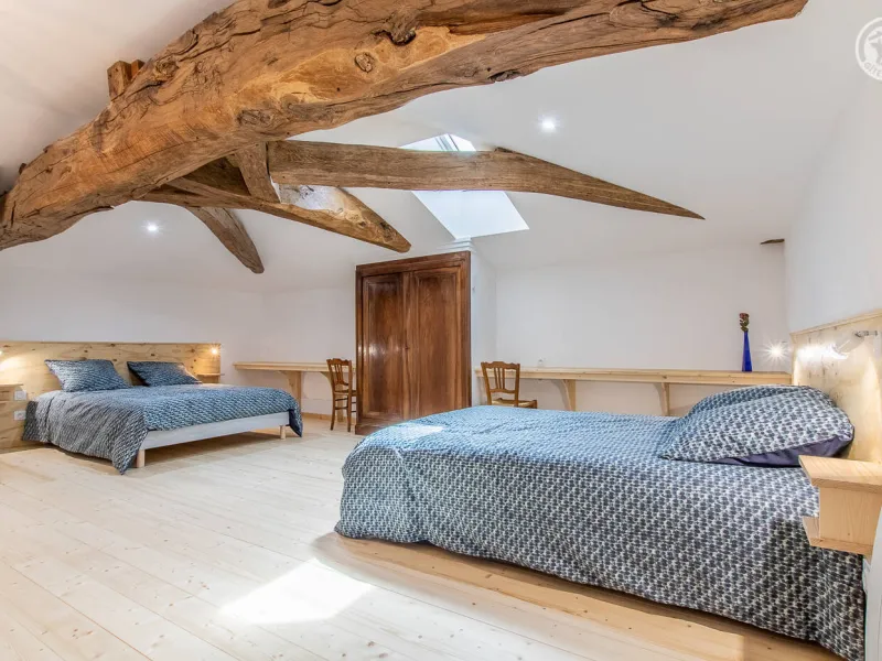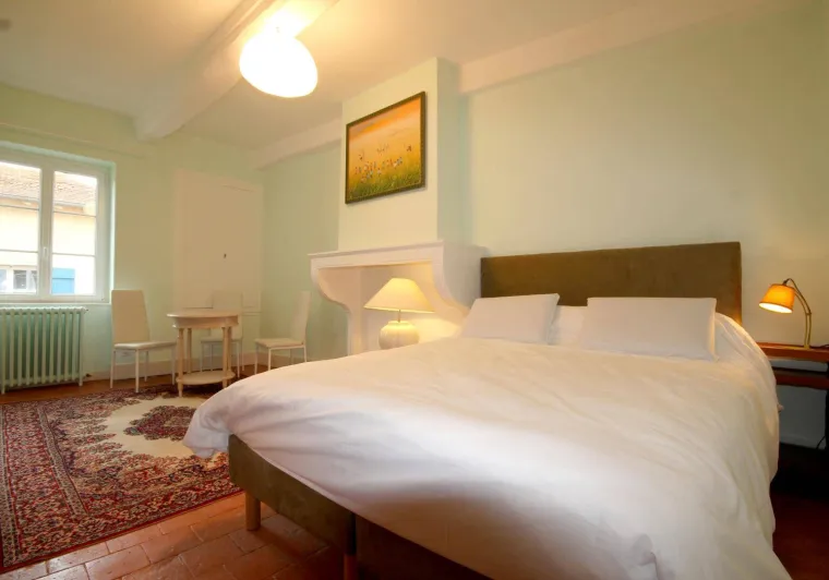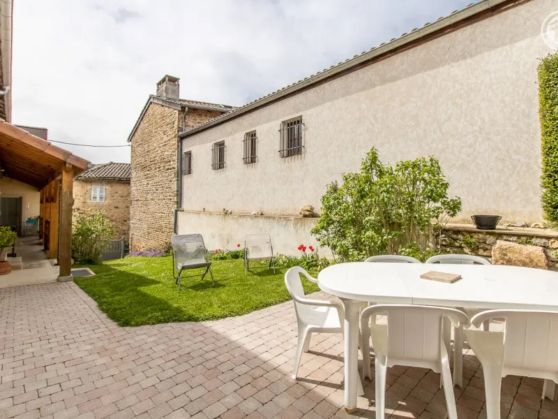 Monique & Martin vous ouvrent les portes d'une maison de pays du 19ème siècle - dotée d'une traditionnelle "galerie mâconnaise" abritée - qu'ils ont soigneusement restauré avec style & goût, blottie au calme en bordure d'une paisible petite ruelle peu passante & lisière de vignes. En plein cœur du vieux village préservé du charmant bourg viticole typique de Sologny (église romane classée du XIIe siècle, plusieurs châteaux, lavoirs, demeures historiques…), lové "en balcon" à flanc de coteau sud exposé. Magnifique cadre paysagé au creux d'un bucolique vallon de coteaux de vignobles & prairies sous les crêtes boisées de vastes forêts sauvages environnantes (à parcourir lors de balades à pied ou VTT). Gîte de grand confort. Ultra spacieux. Vaste pièce de vie. Chaleureux cachet campagnard aux accents contemporains. Equipement complet de grande qualité. Ambiance zen & très douce. Beaucoup de charme & caractère (dont une sculpturale charpente d'origine en "étoiles" côté chambre). Cosy & douillet. Large terrasse exposée & ombragée. Agréable jardin clos intimiste, engazonné, fleuri & arboré (agrémenté d'un mini verger : pommier, poiriers, noisetier… / cueillette possible de fruits frais durant votre séjour !) offrant une belle vue dégagée sur le village & son église. Splendide panorama & paysages à découvrir aux alentours.Composition : Maison individuelle jouxtant l'habitation des propriétaires (indépendance totale sans vis-à-vis). Wifi. Chauffage électrique. Accès gîte au 1er étage : séjour-cuisine-salon, 2 chambres (lit 2 p. 140x190cm dans chacune) avec salle d'eau privative (douche/WC) dont une "sur pallier" (avec Wc indépendant). 1er ét : 1 chambre (2 lits 2 p. 140x190cm + un canapé convertible BZ 2 p. en appoint de 140x190cm) avec sde privative (douche/ Wc indépendant). Balcon abrité + terrasse + jardin (espace réservé côté jardin propriétaires) + garage (2 places) + local vélos privatifs. Supermarché 7 km. Gare 15 km. Non fumeurs. Gîte labellisé "Accueil Vélo".