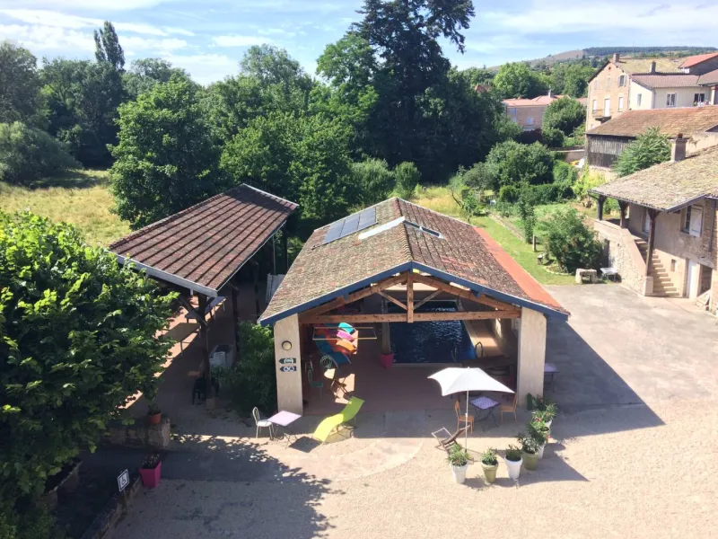 Le grand gîte de La Roche Bleue est une vaste maison de famille, alliant charme et confort. Elle peut accueillir jusqu’à 15 personnes, dans un parc clos de 2 800 m² avec piscine sécurisée, chauffée en saison, préau équipé et jeux pour enfants. Au cœur du village de La Roche-Vineuse, avec commerces, elle est accessible à tous, toute l'année. Proche de la voie verte, c’est un hébergement central pour rayonner à pied, à vélo ou à cheval sur Pierreclos, Berzé ou la Roche de Solutré. A 15 minutes de Mâcon et Cluny, proche des 2 gares TGV. Avec ses 5 chambres doubles (dont une suite familiale de 2 chambres communicantes équipée pour les personnes à mobilité réduite), son alcôve de 4 lits, ses 4 salles d’eau et WC séparés, ses 2 cuisines, la maison s’adapte à votre groupe familial. Animaux bien élevés bienvenus. Linge de lit, serviettes éponge à disposition. Mobilier de jardin, barbecue, kit bébé fourni. Animations nature et découvertes gustatives sur réservation.Privatisation de la propriété en juillet et août à la semaine du vendredi 18h au vendredi 10h. Formules week-end : 3 nuits du vendredi 18h au lundi 10h ou 2 jours/2 nuits du vendredi 18h au dimanche 18h. Séjour minimum de 2 à 7 nuits. Arrivée flexible.