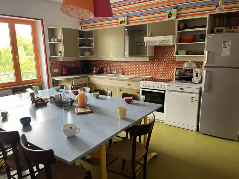 Le Grand Gîte de la Roche Bleue est situé dans un tiers-lieu dans lequel cohabite plusieurs activités : coworking, accueil de séminaire, animations…, dans une logique d’échanges et de respect de notre environnement (nous sommes certifiés par l’écolabel européen) ... Aussi, il n'est pas rare de rencontrer Séverine, la propriétaire ou Laurent, l'intendant, arroser le potager au petit matin, s’occuper des poules, du courrier et, en saison, de la piscine... C'est un lieu vivant et paisible au cœur d'un village tranquille, ce pourquoi, il n'est pas adapté pour des fêtes et évènements de type mariage.