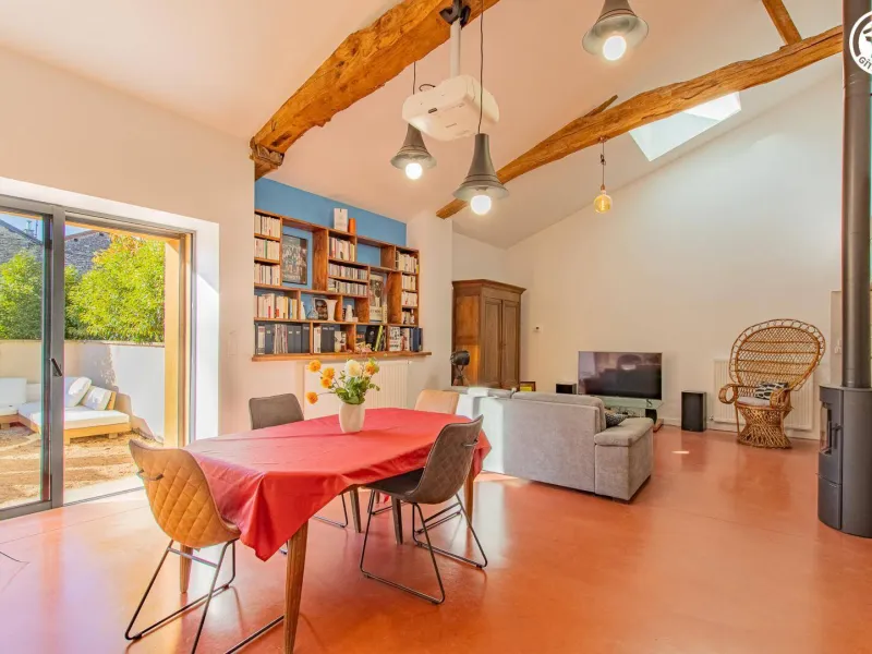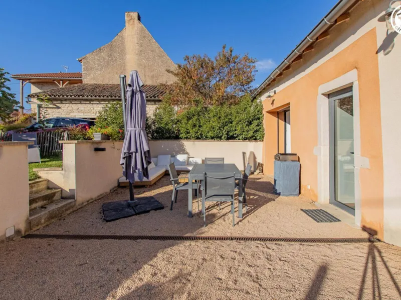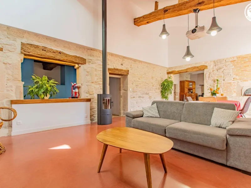 Passionné de cinéma & fin connaisseur du vin (dégustation découverte possible dans le caveau jouxtant le gîte), Bruno vous accueille au sein d’une authentique demeure bourguignonne de caractère du XVIIe pétrie d’histoire (ancienne ferme & maison de vignerons), soigneusement restaurée dans les règles de l’art avec style & goût, nichée au cœur d’un pittoresque petit hameau rural à deux pas des vignes (appellation Viré Clessé) & 8 km de Chardonnay, berceau historique du mythique cépage éponyme de renommée mondiale. Superbe écrin paysagé (espace protégé en ZNIEFF pour ses richesses faunistiques & floristiques), lové au pied de la montagne de Burgy (massif préservé offrant un exceptionnel belvédère panoramique jusqu’au Mont-Blanc par temps clair !) au creux des monts du Mâconnais & sa bucolique campagne viticole vallonnée alternant coteaux de vignobles, prairies & forêts sauvages. Gîte de grand confort. Ultra spacieux. Vaste pièce de vie riche d’un beau volume "cathédrale". Très élégant cachet campagnard aux accents contemporains, mixant traditions & modernité dans l’esprit d’un "loft à la campagne", sublimé par l’âme du bâti (conservation des murs en pierres de Bourgogne, linteaux en pierres & bois, charpentes, tomettes, ancien four à pain, évier & chauffe plat en pierres, plafond à la française…) & la "déco" soignée empreinte de la "cinéphilie" du propriétaire. Énormément de charme & caractère. Ambiance, douillette & cocooning. Large terrasse en gravier exposée (fleurie & végétalisée) adossée à un agréable mini jardinet.Composition : Gîte dans maison de village mitoyenne comprenant logement propriétaire + logement loué à l’année (indépendance totale sans vis-à-vis). Wifi (fibre). Chauffage PAC + poêle bois. Séjour-cuisine-salon (canapé conv. 180x140cm d’appoint), 2 chambres (lit 2 p. 160x200cm + canapé conv. 180x140cm d’appoint / lit 2 p. 140x190cm), salle d’eau (douche), WC indépendant. Terrasse + jardinet + parking privés. Petits commerces 7 km. Supermarché 9 km.