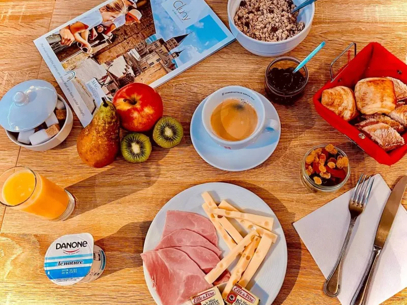 • Petit-déjeuner gourmand : commencez votre journée tout en douceur avec notre petit-déjeuner complet. Régalez-vous avec une sélection de boissons chaudes, jus de fruits à volonté, viennoiseries, pains frais, confitures artisanales, fruits de saison, céréales, fromages et charcuterie. Un véritable festin matinal !
