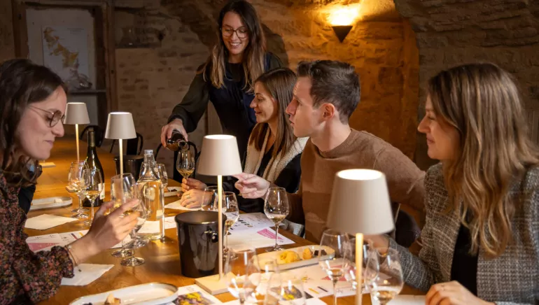 Cet atelier vous invite à passer de la théorie à la pratique de la dégustation et des accords mets-et-vins. Après un premier vin blanc dégusté seul, vous découvrirez 4 autres appellations, chacune accompagnée d’une bouchée apéritive. Les accords complémentaires et de contrastes n’auront plus de secret pour vous.
